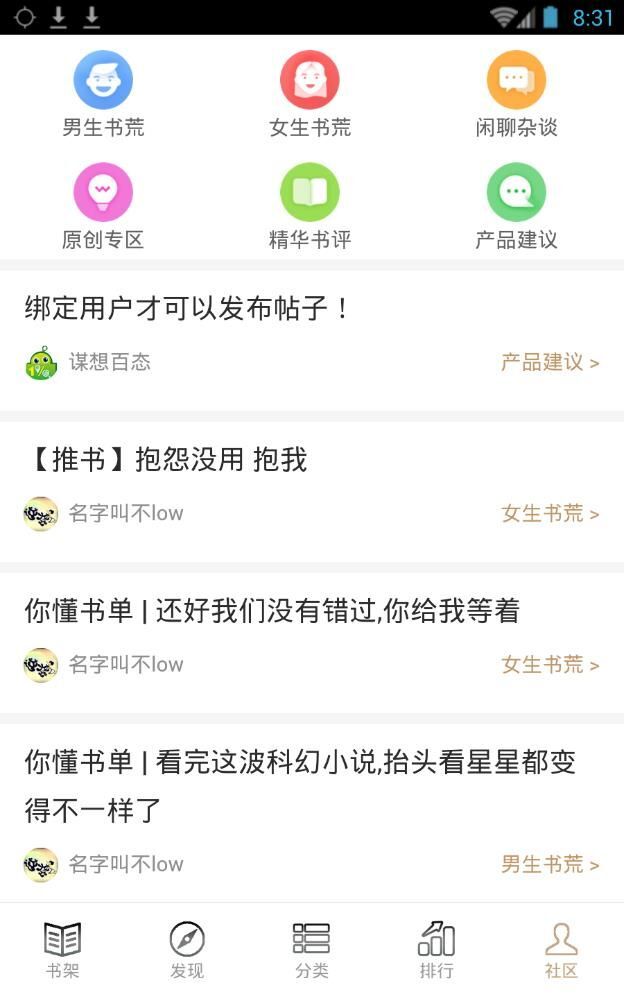 3、书库推荐,可以根据分类发现有兴趣的书籍。