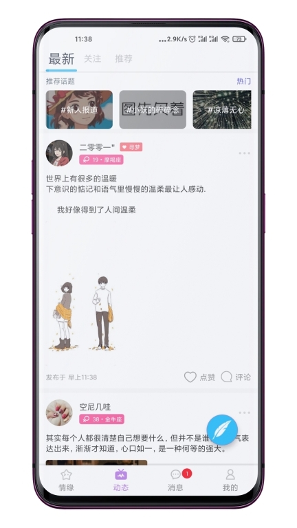 恋爱CP是一款专为年轻人打造的语音社交平台,能帮助众多单身用户轻松脱单,大家可以在这里在线分享生活、畅快交友,找到心仪的另一半。平台所有功能均免费开放,感兴趣的朋友快来体验吧。