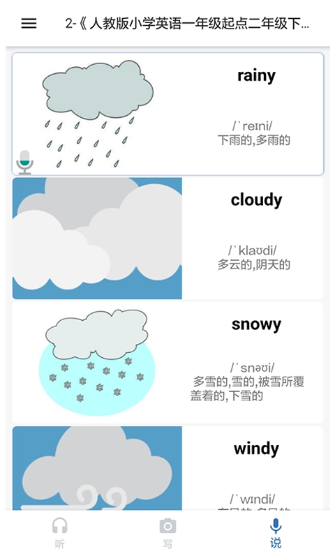 我说你写安卓版是一款专注于英语听力学习的教学软件,不仅致力于为用户提供全面的网络宣传与技术应用整体策划方案,还能在每节课程结束后帮助用户巩固复习当日所学的新知识点。在这里,你能体验到便捷高效的英语单词学习内容,软件内汇聚了各类常用英语单词与句型,且单词学习阶段覆盖小学、初中、高中三个学段,有需要的用户可以使用。
