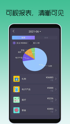 众邦记账app支持用户在手机上随时记录每日账单,还能与各大支付软件关联实现自动记账——用户的每笔付款记录都会同步至软件中。它操作简单便捷,能避免忘记记账的困扰,还可智能分析每日的账单开销情况。