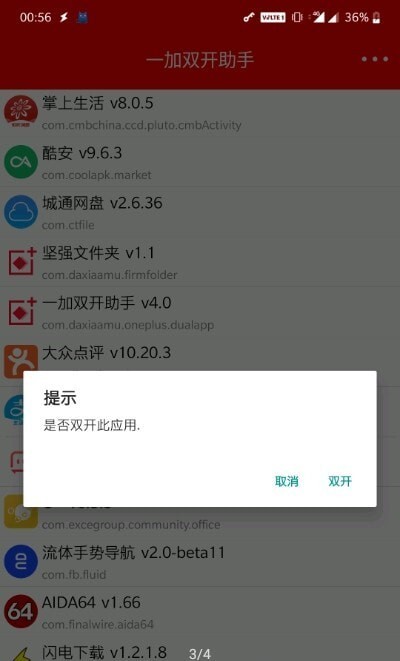 2、支持任意应用双开,点击应用名称即可开启双开,再次点击则关闭双开功能。