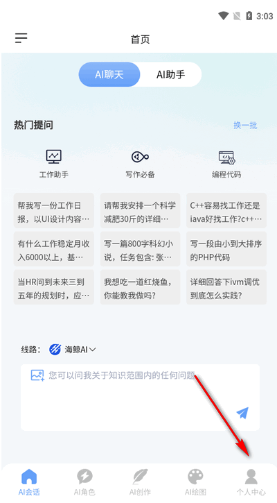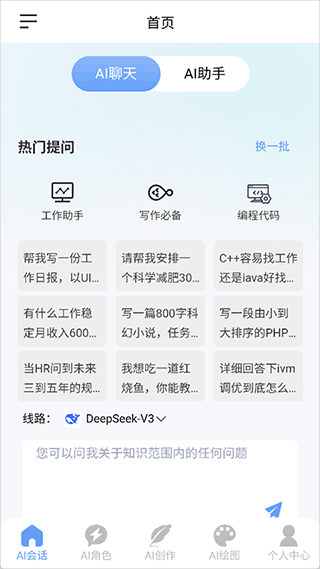 1、ai聊天功能可以让你向它问各种问题