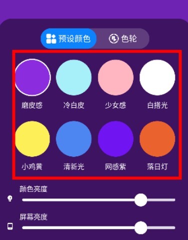 进入主页后,既能够挑选预设好的光色,也可以借助色轮来随意调整色调。