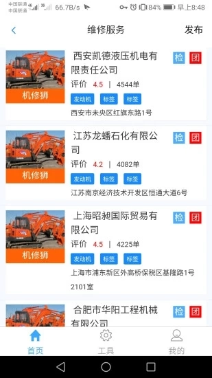 2、「机修狮」的商机板块整合了全网车型对比、维修服务、机械出租、二手出售、招标中标、企业招聘、热门新闻、配件商城这八大功能,打造出工程机械行业全场景的一站式服务平台。用户(包括游客)可免费查看和发布各类工程机械行业相关信息,该板块目前已成为国内领先的一站式智能在线商城。