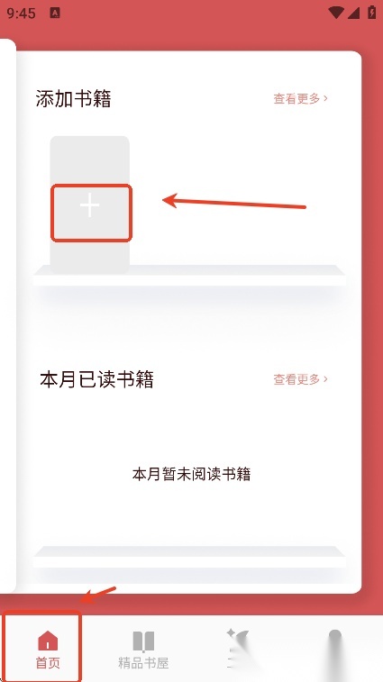 1. 点击"+"号导入手机里的电子书,创建个人书库