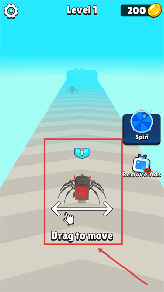 1、在【Level-1】关卡里,依据【Drag-to-move】的提示,拖动蜘蛛型单位进行左右移动,以此调整它的行进路线。