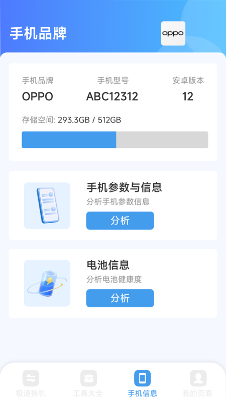 3、能够查看手机的品牌、型号、存储空间、电池健康度等各类信息,便于用户及时掌握设备的具体状态。