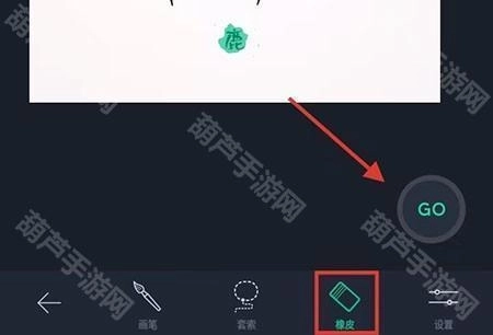 3、用画笔涂抹后,选择第三个橡皮功能,对水印周边的画笔范围加以修饰,修饰完成后点击界面上出现的“GO”按钮。