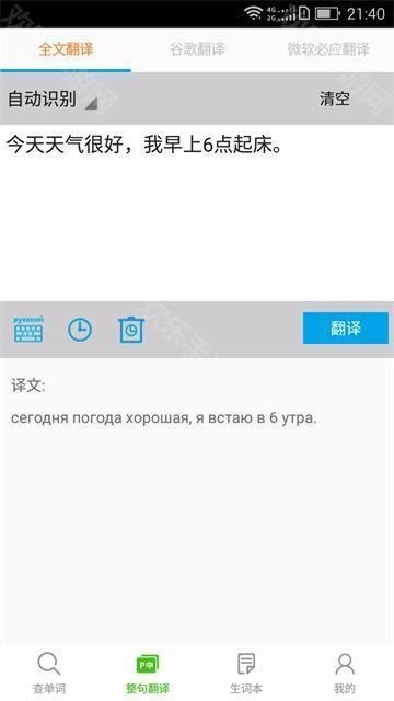 1、在本站软件中,进入软件后打开翻译界面,输入对应的俄语或中文并点击翻译按钮,即可完成翻译操作;此外,软件还会为用户解释相关词语的用法及含义。