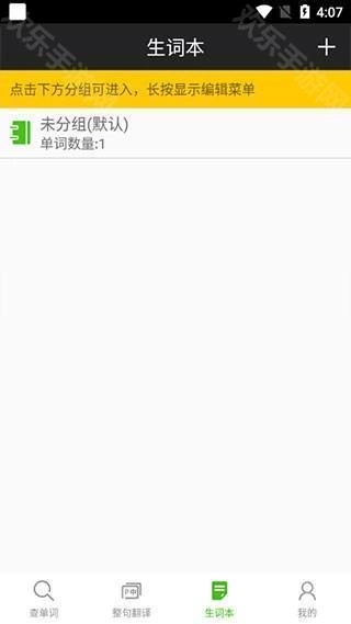 2、翻译完成后的句子或词语会被系统自动记录到生词本页面,若有学习需求,可在此处点击学习,也能对词语按照不同含义进行分组。