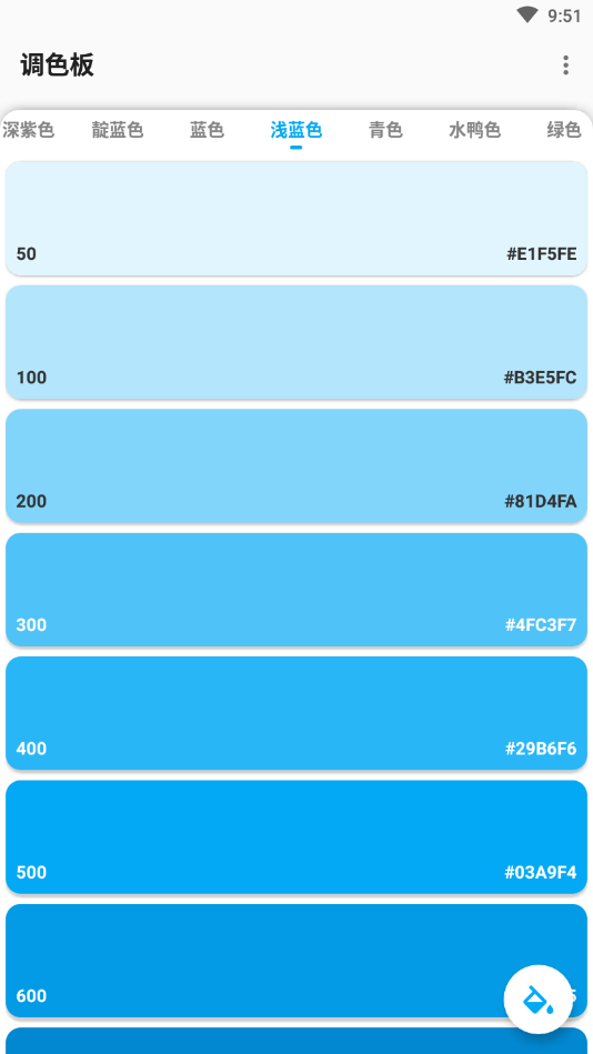 3. 选定基础色后,用户可借助调色板的推荐功能,获取能与该基础色和谐搭配的其他色彩。