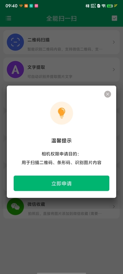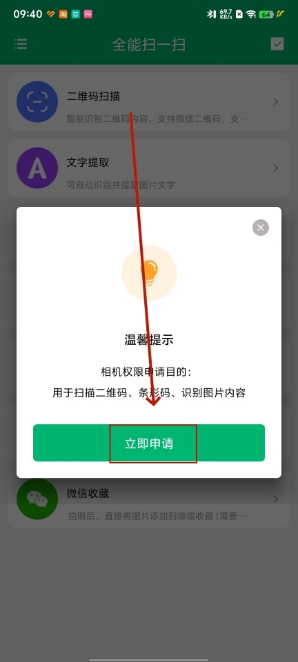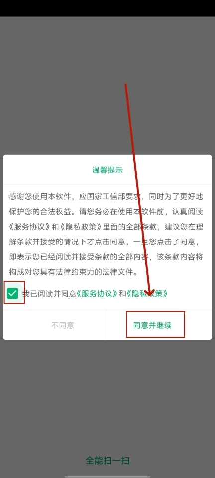 安装并打开全能扫一扫,勾选协议,
