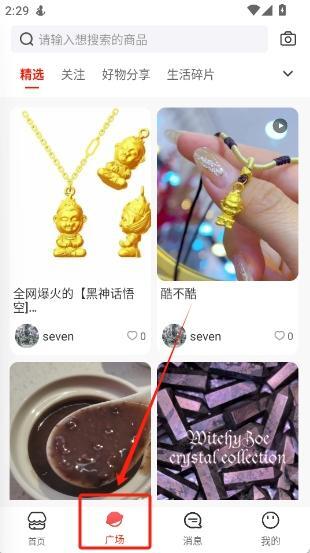5、在首页的“广场”板块中,你能浏览到其他用户发布的种草图文内容,同时也可以上传自己的分享作品。