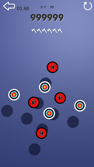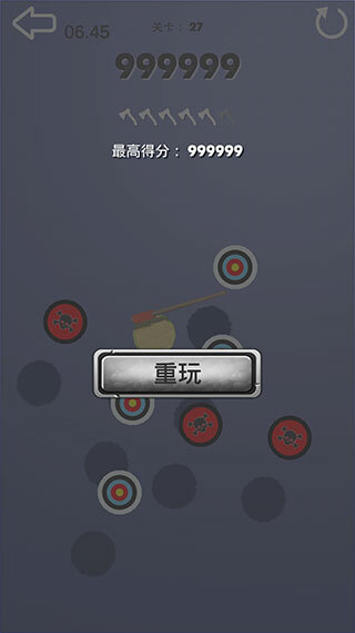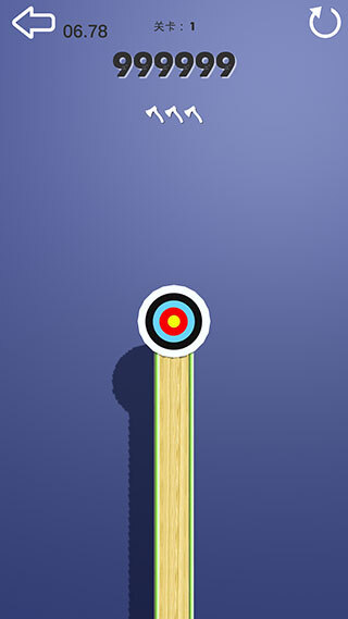 4、进入关卡后,先观察靶子的分布情况和运动规律,然后滑动屏幕进行瞄准并预判靶子的落点,找准时机投掷斧头,力求获得更高分数。