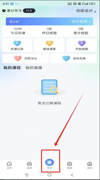 4、点击页面下方的“学习”选项,即可查看你在该平台上的所有历史学习记录。