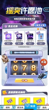 4、最后一种就是许愿池玩法了,摇出三个相同数字就能获得皮肤大奖。