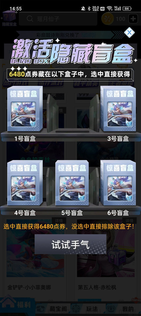 2、第二种方式是通过开盲盒的形式赢取皮肤,若激活隐藏盲盒,可获得6480点券,拿到点券后就能直接用于购买皮肤。