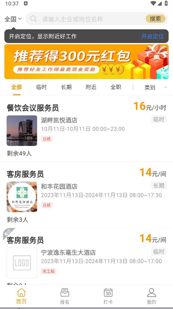 第三步:注册成功后,您可以在首页或“我的”页面查看各类兼职工作,正常使用相关功能没有问题。