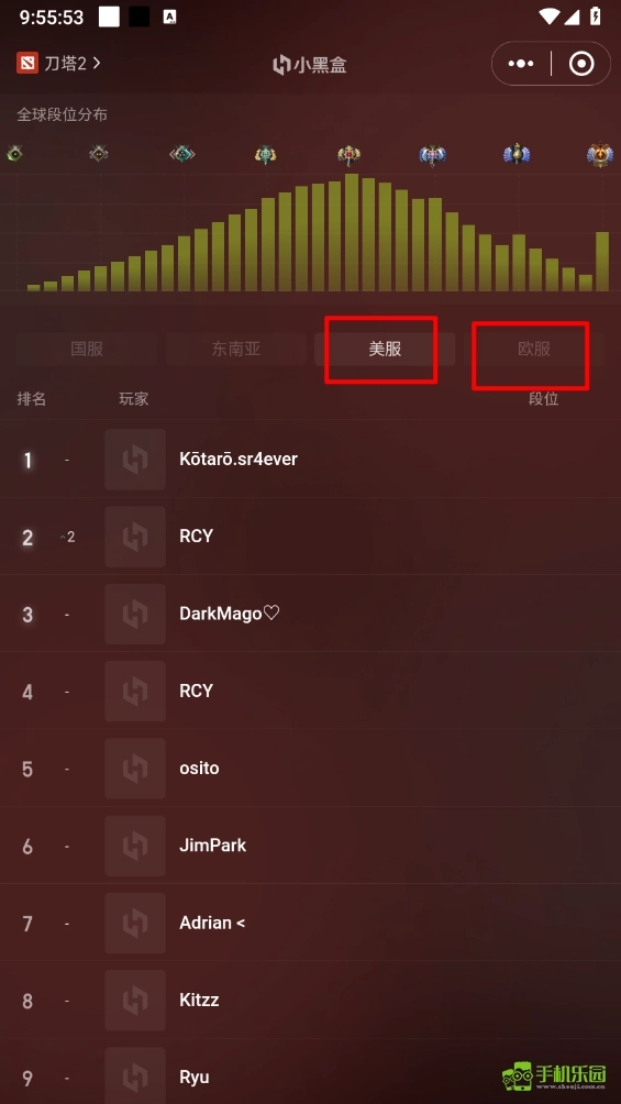 4、最后还能切换至美服、欧服等服务器,查看对应的排名信息。