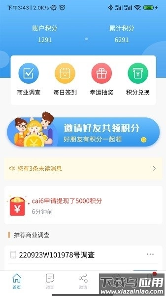 3.单次调查可获得十至一万不等的积分;