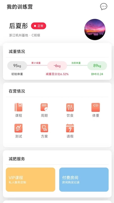 1、打开魔瘦减重,在首页可以看到自己的建中情况。