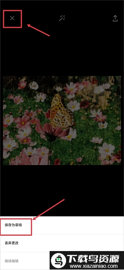 4. 添加操作完成后,点击页面左上角的返回按钮,随后选择把当前正在编辑的内容保存为草稿。