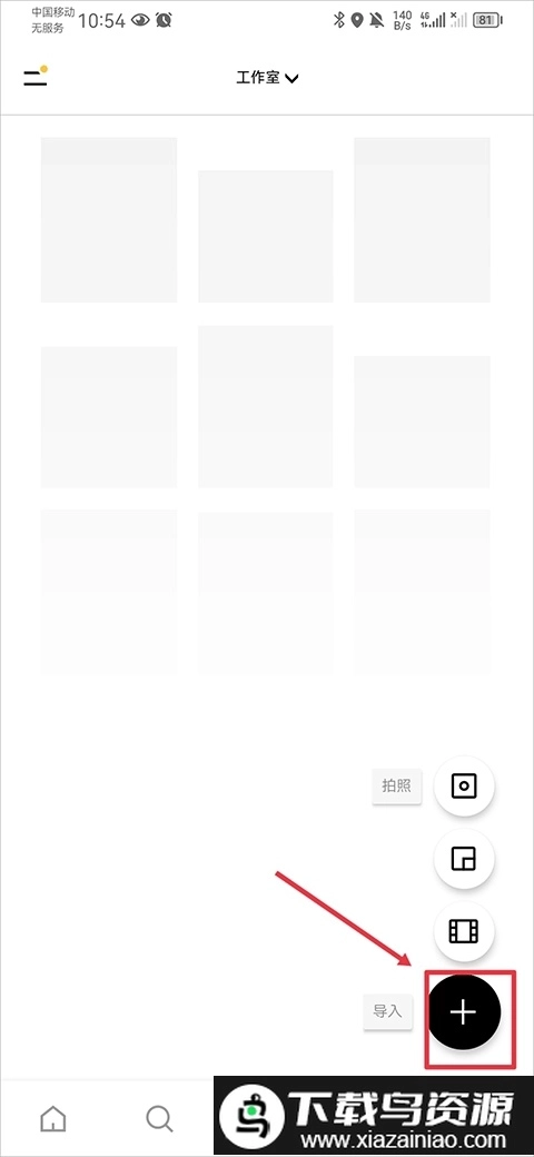 1. 进入应用的工作室界面后,点击右下角的加号按钮,导入一张照片;