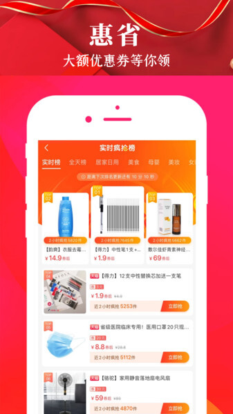 2、咚咚抢:每天整点限时抢,抢到即是赚到。