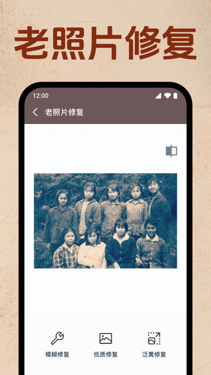 这款照片修复恢复App是一款专注于照片修复的手机应用,它具备老照片修复、模糊照片处理、画质增强以及黑白照片上色等多种实用功能。用户手机本地存储的老旧照片,都能通过该App在线完成修复操作,无论是让模糊的照片变得清晰,还是修复斑驳照片上的划痕,它都能轻松应对。有相关需求的用户,欢迎前来使用。