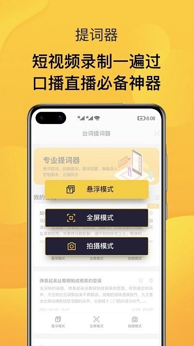 提词器能帮用户解决拍视频时记不住台词剧本、背台词费神耗时等问题,彻底消除了大家录制短视频过程中忘词的困扰。
