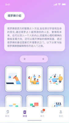 1.为用户提供详尽的塔罗牌解读以及牌阵搭配方法,助力用户更深刻地领会塔罗牌的内在意蕴。