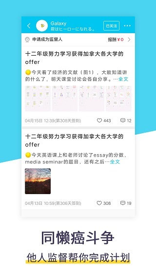 -关注优秀用户,获取每日打卡分享和成功经验;