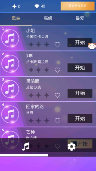 2、浏览曲库,在流行、古典等数百首音乐里挑选你喜爱的歌曲,开启挑战之旅。