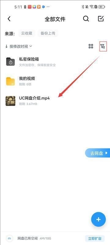 1、启动UC浏览器,点击“我的”图标进入个人中心页面,找到“我的网盘”选项,然后点击“全部文件”图标。