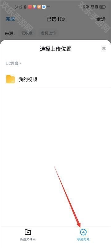 4、最后,选定要转存的文件夹,点击“转移到此处”按钮,就能完成文件转存了。