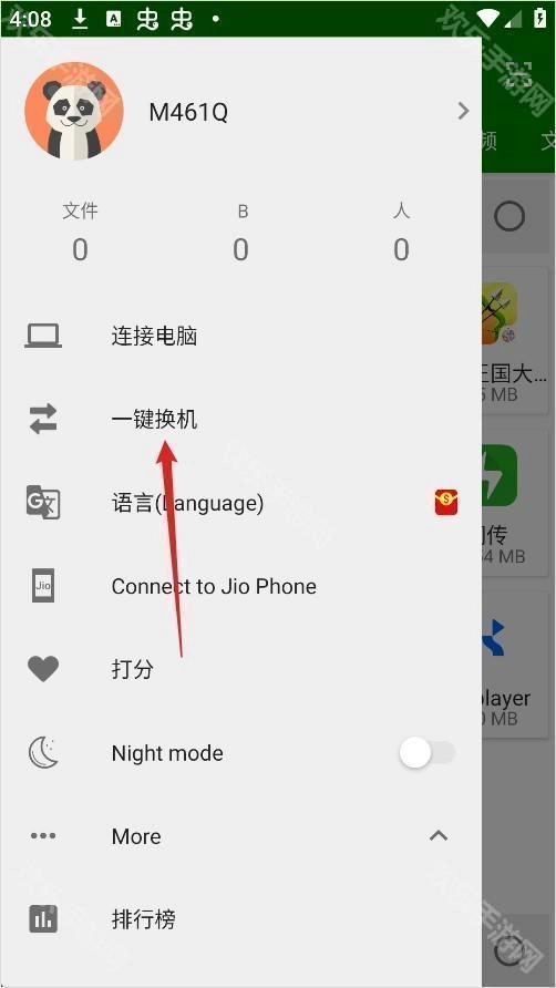 3.点击左上角的头像进入菜单界面,接着选择“一键换机”或者“连接朋友”这两个选项中的任意一个来执行传输操作。
