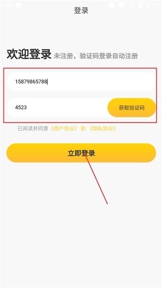 2、进入登录页面后,输入手机号码,点击“获取验证码”按钮并填写收到的验证码,勾选相关协议后点击“立即登录”按钮即可;若为未注册用户,系统将自动完成注册流程。