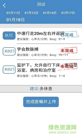 【执行医嘱】 针对医生制定的I期康复方案,可连续设置七日执行计划,严格依照医嘱落实并做好相关记录。
