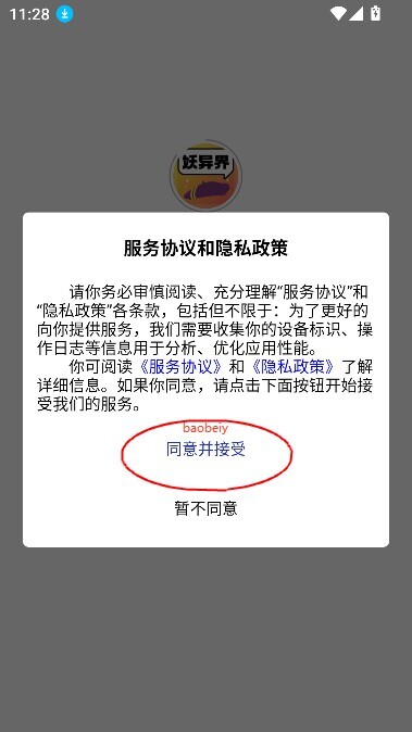 妖异界软件,点击同意并接受进入