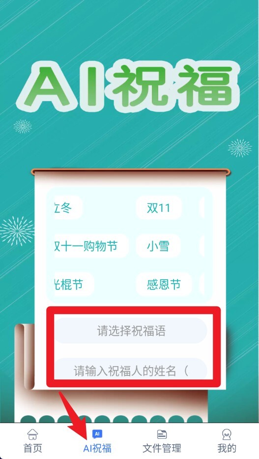 3、AI祝福功能具备节日祝语挑选和姓名填写的功能,能生成专属的祝福内容,既简便又富有趣味性。