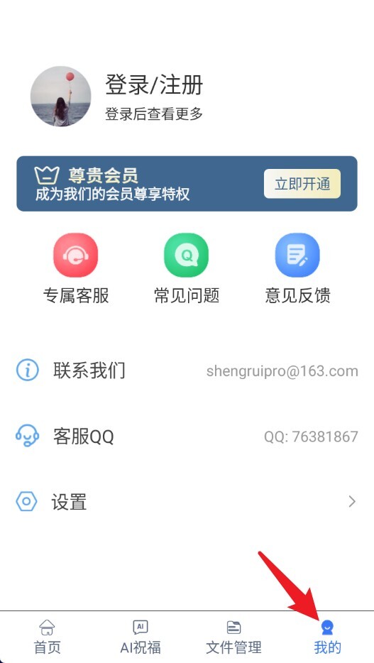 5、点击“我的”可以完成账号登录、联系客服、开通会员以及修改设置等个性化操作。