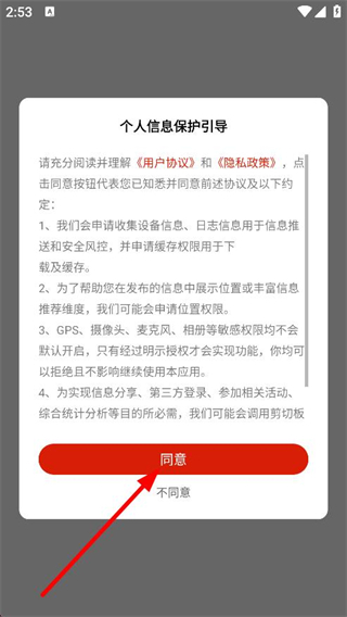 1、在个人信息保护引导弹窗里点击同意后,即可进入我的页面。