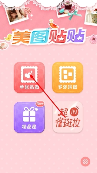 1、打开软件后,点击【单张贴图】功能,可进入单张图片的编辑流程,该功能适用于单图装饰场景。