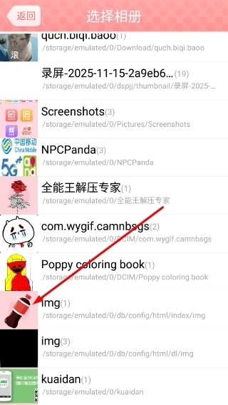 2、在【选择相册】界面,找到目标文件(如【img】)并点击,即可将对应的图片导入到编辑工具中。