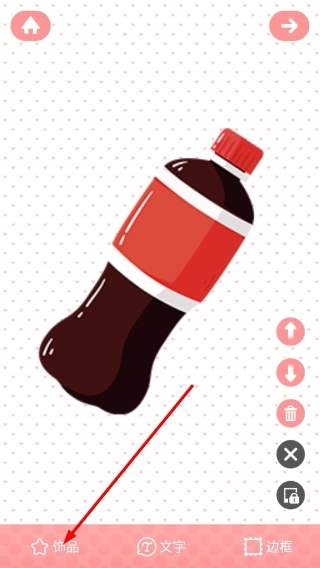 3、导入图片后,点击底部【饰品】选项,可打开饰品素材库,为当前图片添加装饰元素。