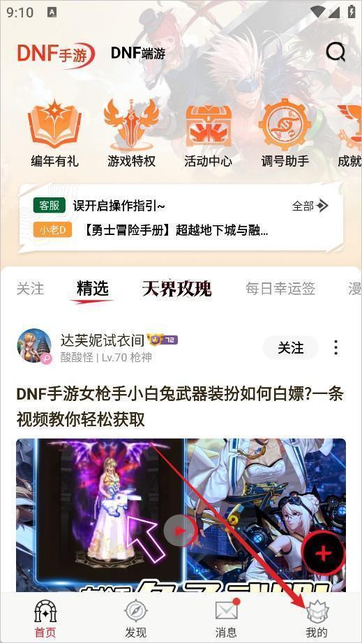 1、打开DNF助手App,点击右下角【我的】;