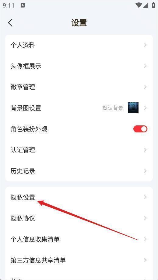 3、在设置功能中点击【隐私设置】;