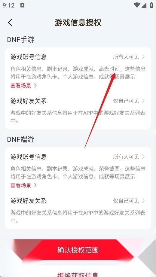 4、找到【游戏信息授权】选项;