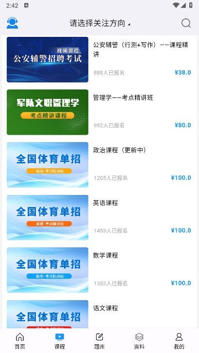 2、进入首页后,您可以选择自己的关注方向,系统便会为您推荐最适合的学习课程。