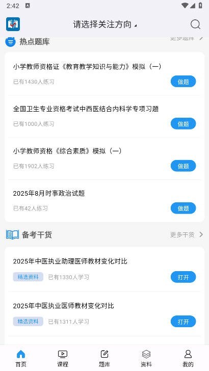 3、提供全方位学习支持,助力用户高效备考,覆盖职业资格证书、技能认证及其他各类考试。